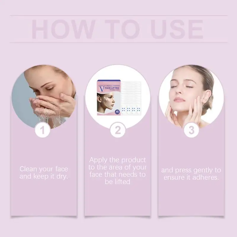 5.Use Simply: Designed from a soft and comfortable material, this face lift tape fits smoothly to the skin without any noticeable sensation, allowing you to achieve an effortless facelift and a natural and youthful appearance